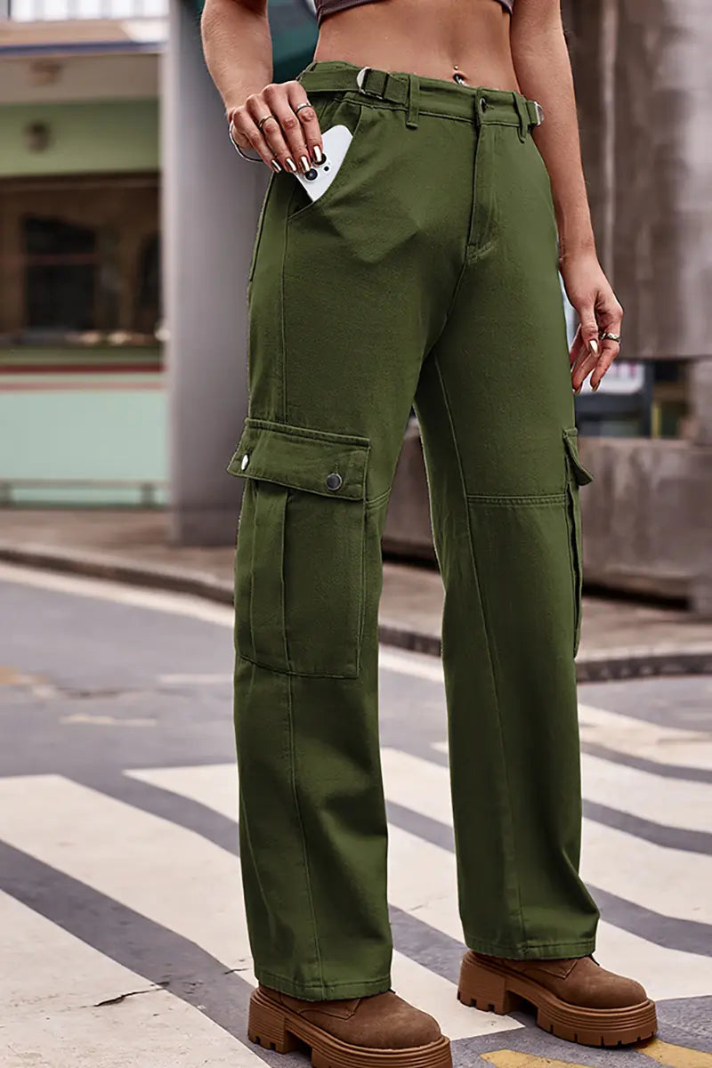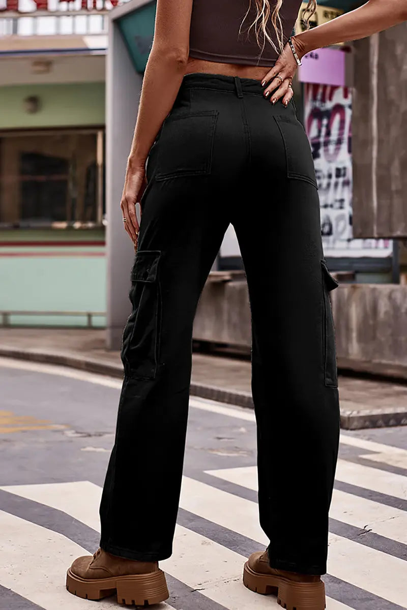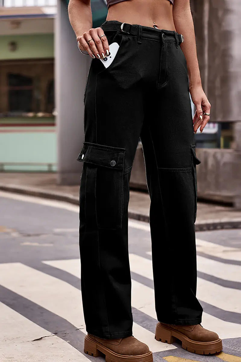 These new American-style denim cargo pants feature an adjustable waistband for a customized and comfortable fit. With their casual yet functional design, they offer a trendy and practical option for everyday wear. Perfect for creating effortlessly cool streetwear-inspired looks.